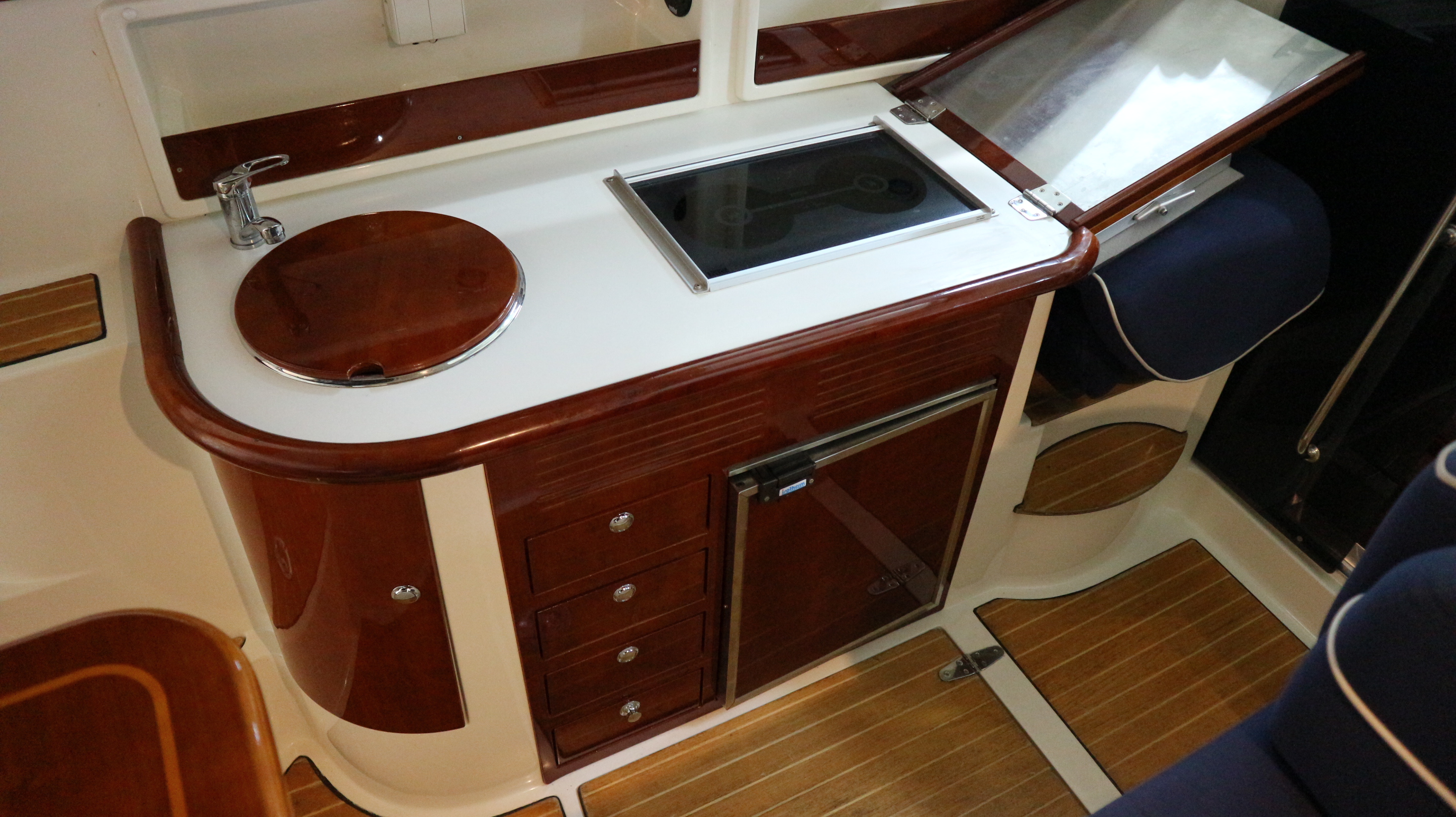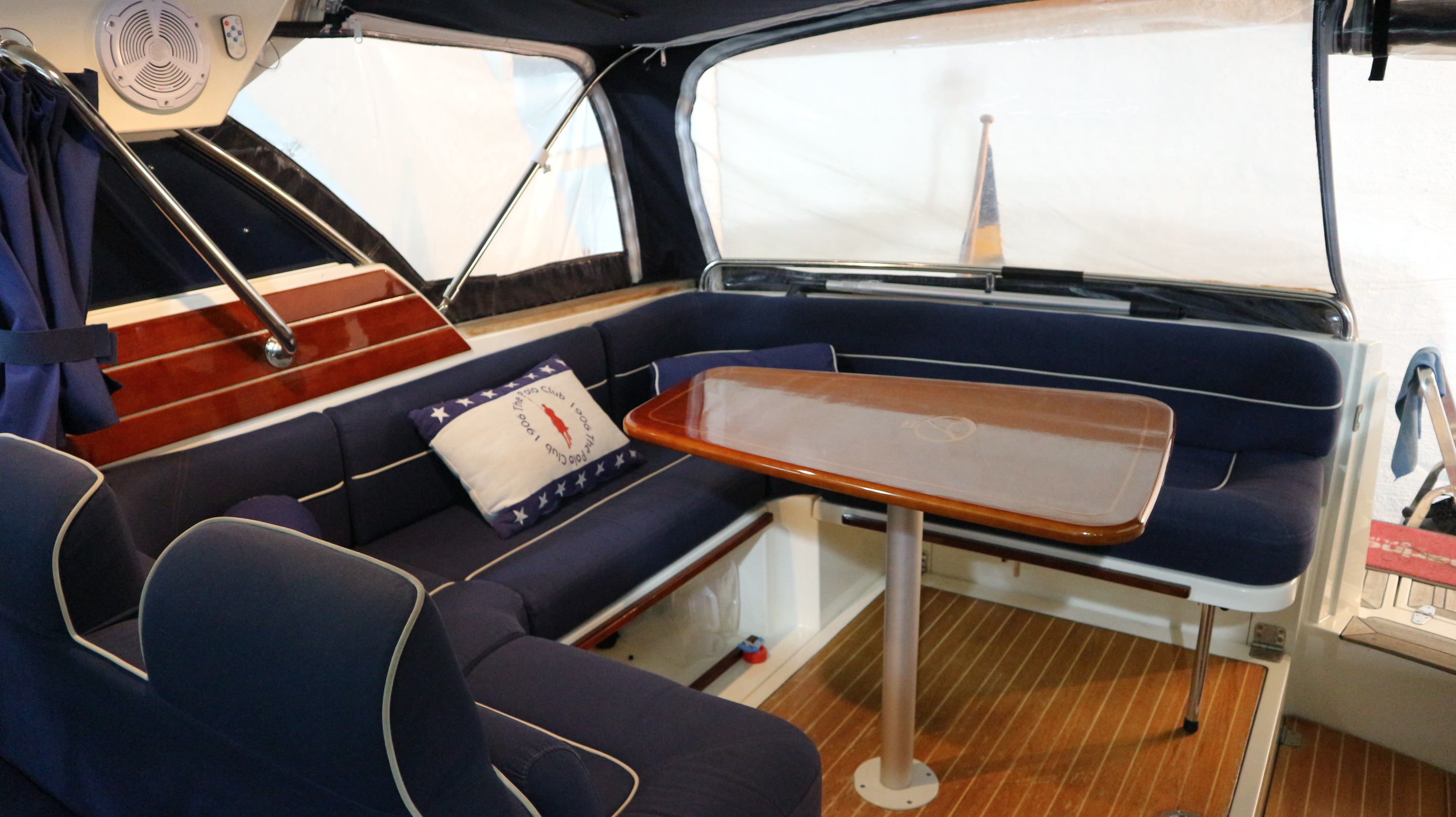 – Teak på skarndäck och badbrygga/akterdäck
